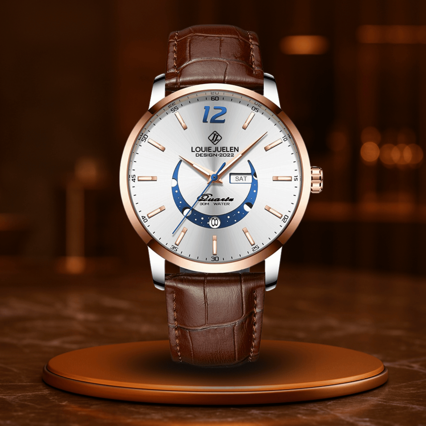 The Lunaris Agenda is not an ordinary timepiece – it is a tool for men who orient themselves not just on minutes, but on moments with meaning. The moon phase indicator connects the passage of time with a glance at the sky – an elegant reminder that not every day is the same.