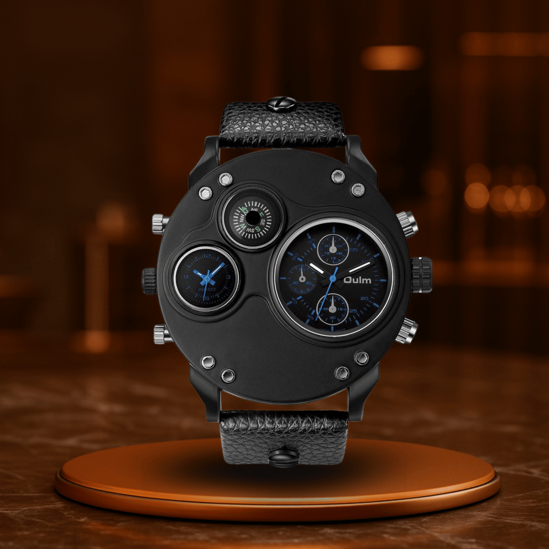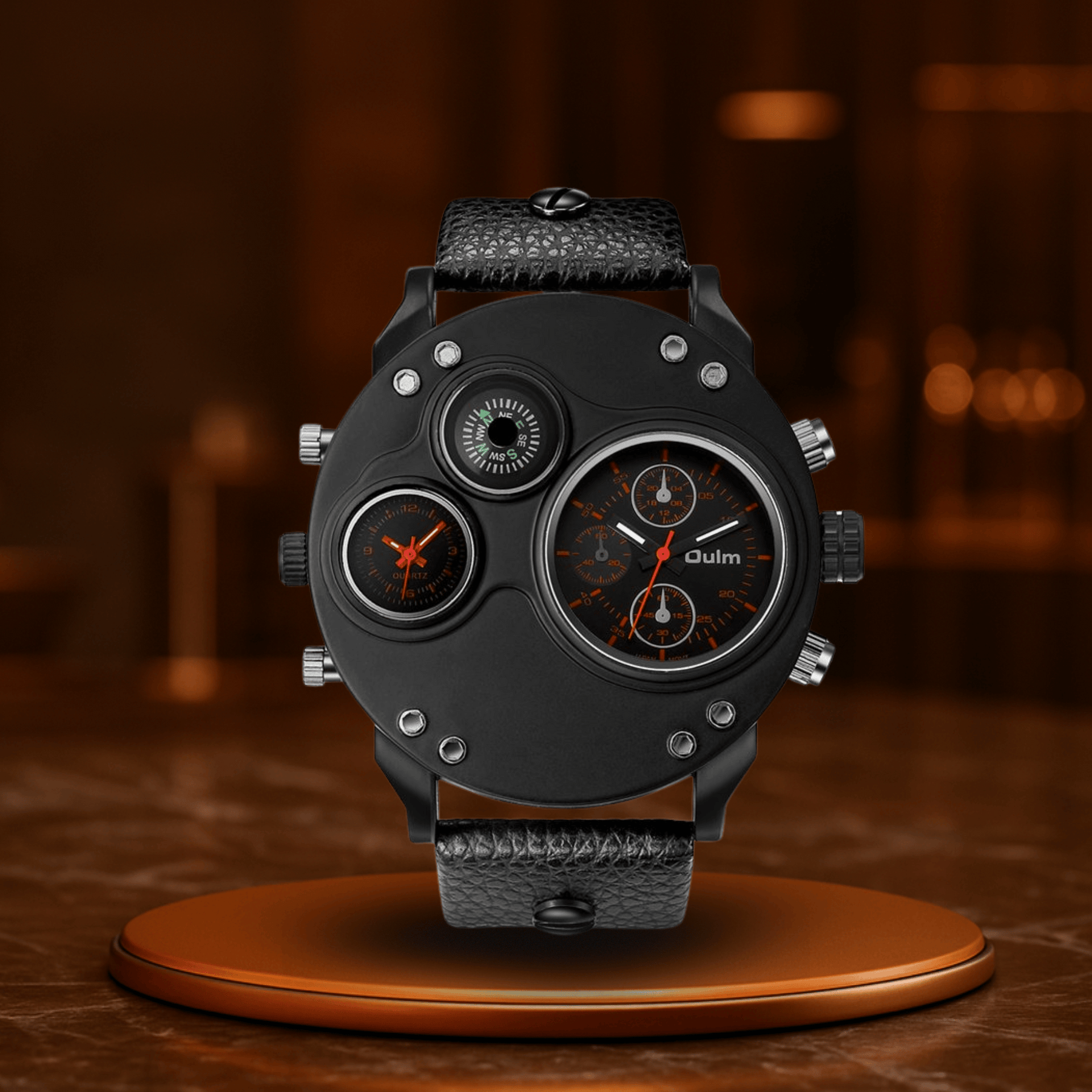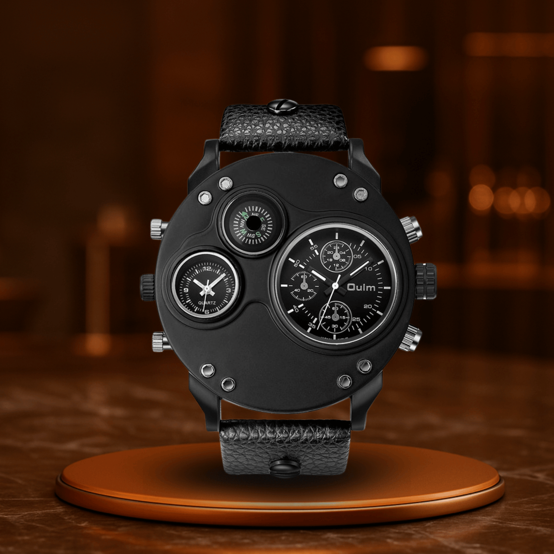 Noir Meridian is not just a watch – it is your tactical tool in a connected world. With its dual time zone optics, a powerful case diameter of 53 mm, and the deep black leather strap, it sends a clear signal: You are at home everywhere – and always stylish on the go.