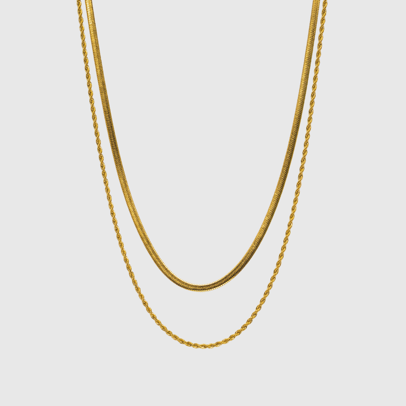 Shine on, girl! The Lily Layers necklace features an elegant herringbone-patterned chain and a cute rope chain. This PVD 18k gold-plated beauty is perfect for beach days or date nights and is made to be worn every day - you'll never want to take it off!